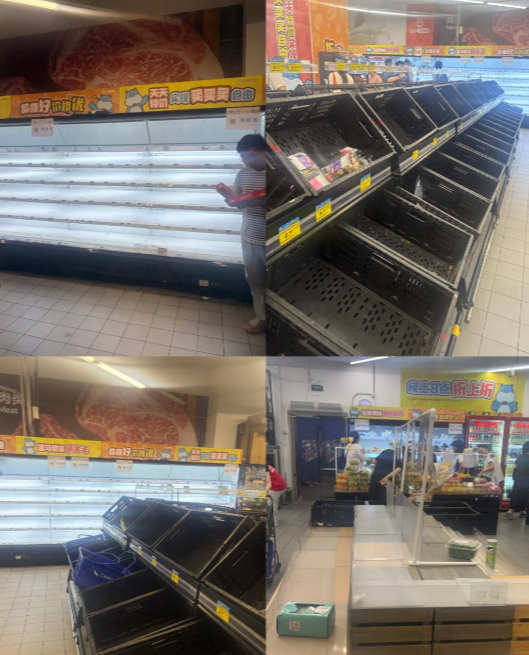 广东一名居民起初对“抢菜”说法不以为然,但下班后亲眼目睹商场内蔬菜区连菜叶子都不剩,鲜肉区同样售罄,才意识到物资紧张的现实。