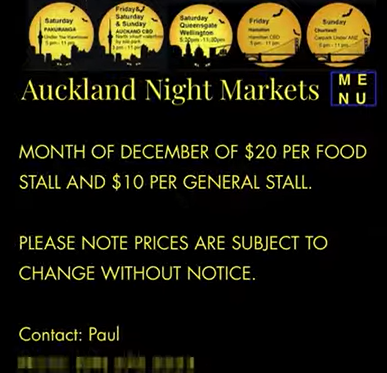 此前,网上有人贴出奥克兰夜市网站的一句附注:“请注意,价格如有变动,恕不另行通知。”