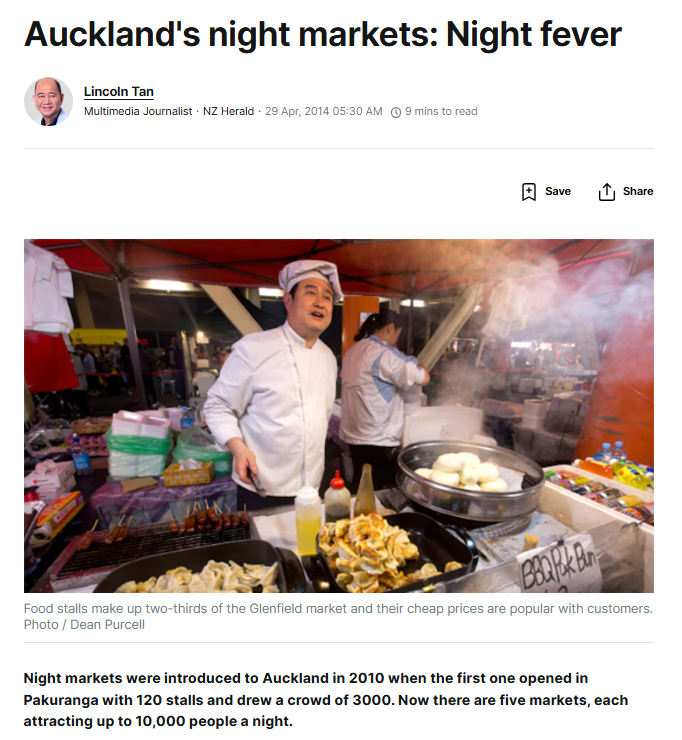 他说,自己在奥克兰北岸Glenfield长大,从小就喜欢夜市。