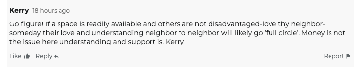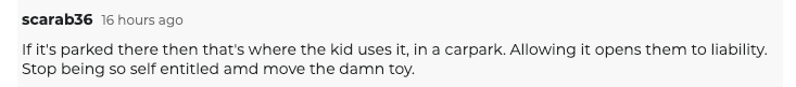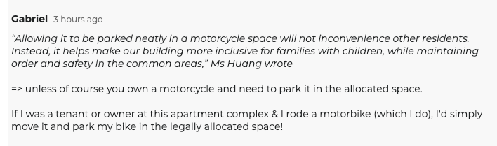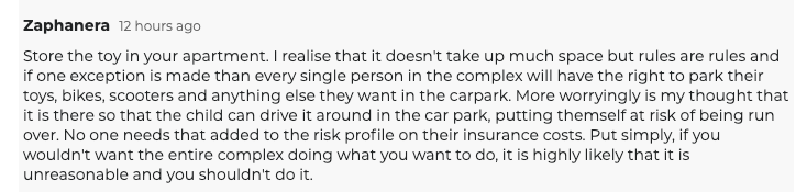 “停放在摩托车位,不会妨碍任何人,还能让社区对有孩子的家庭更友好。”