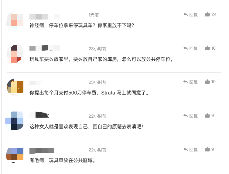 主角是一位华人妈妈,她花了250万澳元买下豪宅,却因为坚持要把孩子的玩具车停在地下车库而与物业“杠上”,甚至发起请愿要求修改规则。