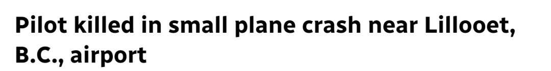 加拿大也有小飞机坠毁,24日,BC省利卢埃特(Lillooet)机场附近发生一起飞机坠毁事故!