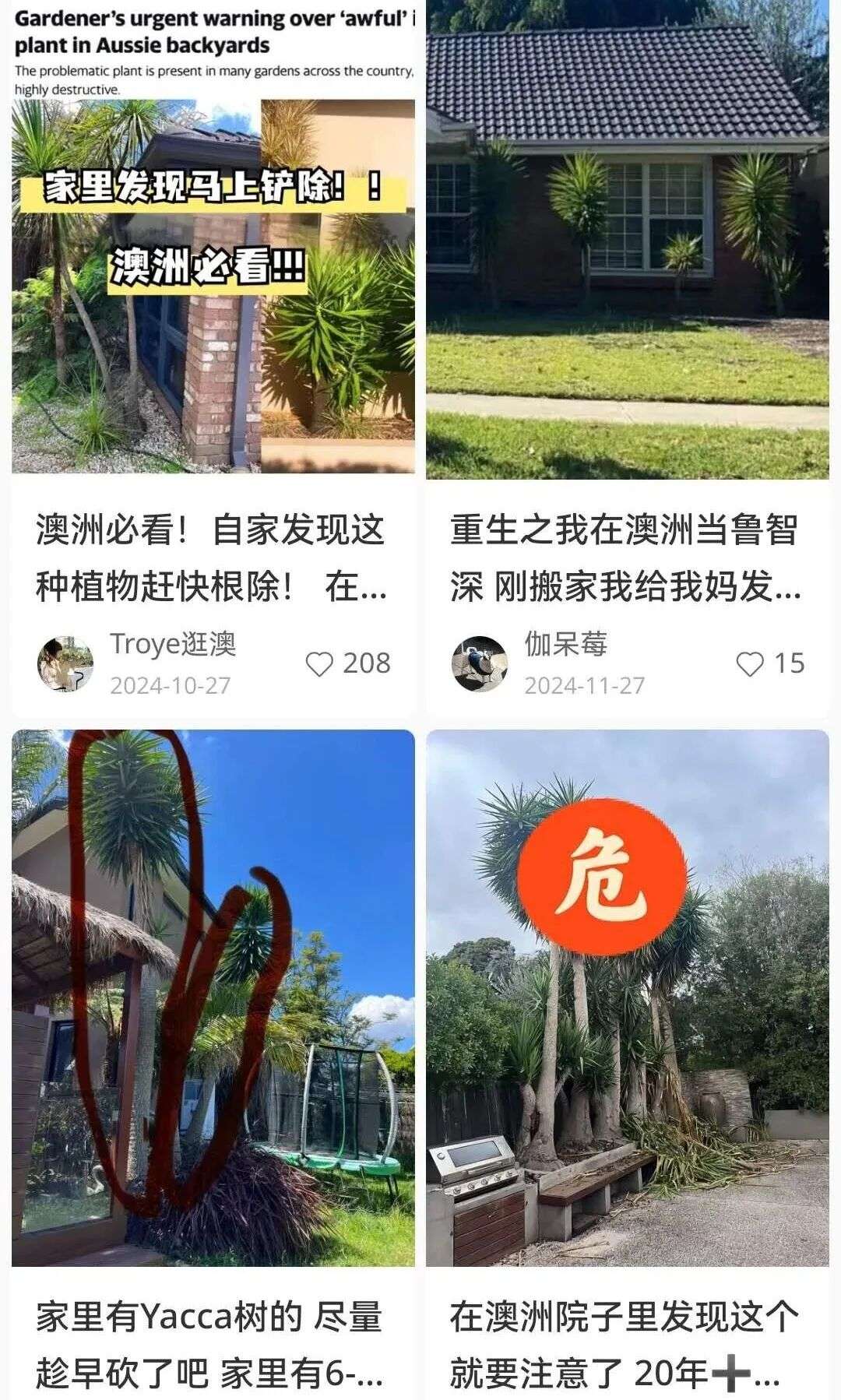 “家里有Yacca树的,尽量趁早砍了吧!”