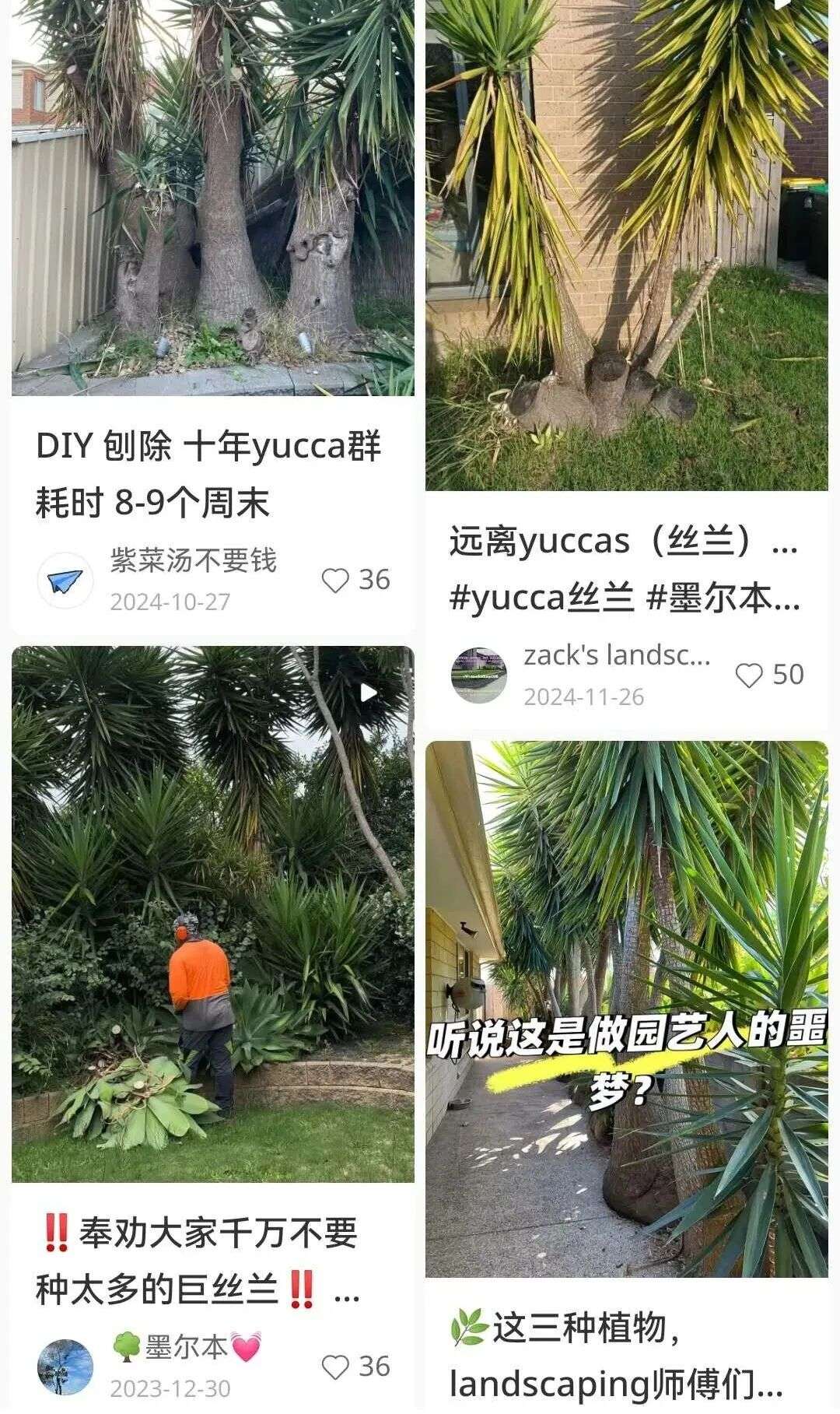 而在澳华人,也有不少人,吃过丝兰树的亏,中文社媒上大量笔记,关于如何移除这种树: