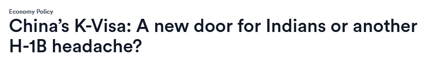 印度媒体更是广泛报道,将美国的H-1B签证和中国的K签进行比对,突出中国签证的优点,一副要让移民“占领中国”的架势: