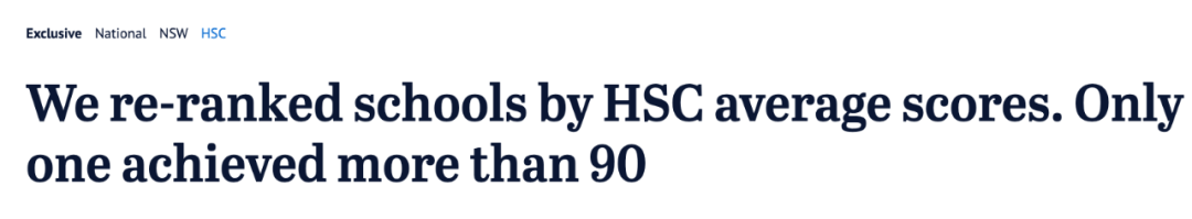 最近,澳媒根据去年HSC的平均分对新州公校进行了重新排名,结果发现只有一所学校平均分超过90。