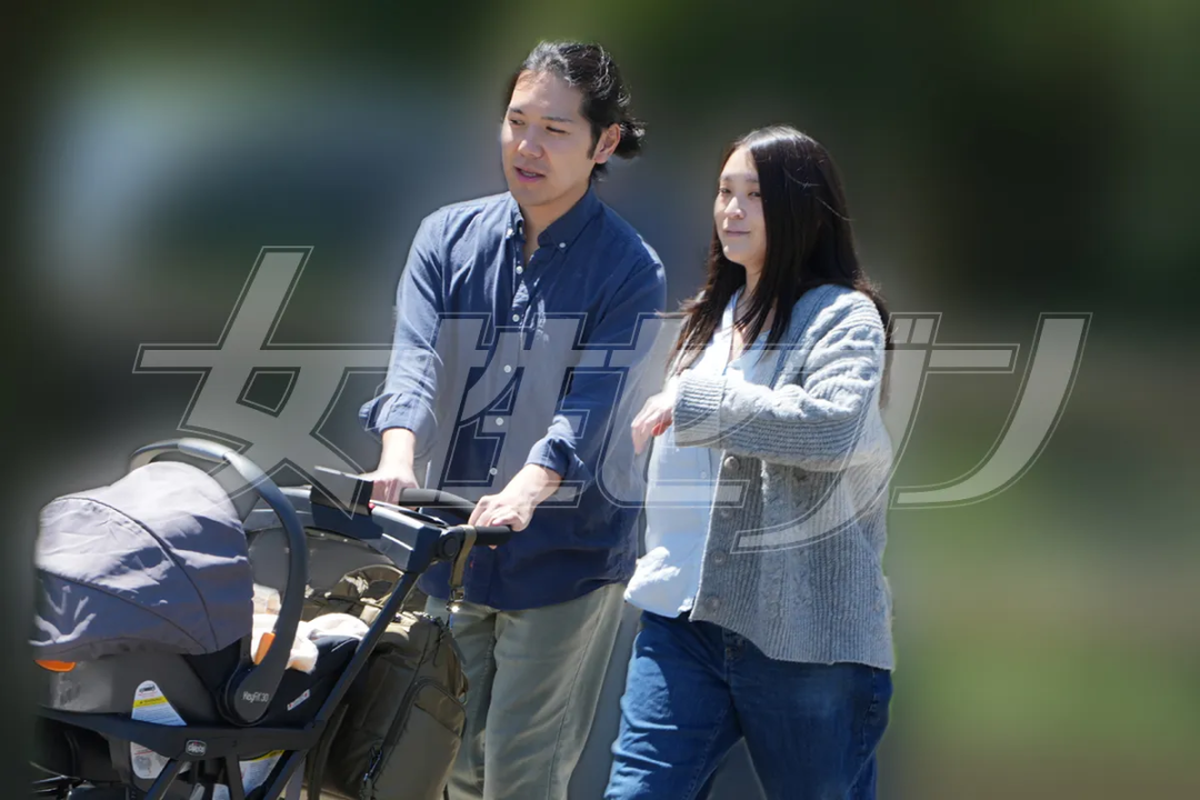 自从真子5月份生了小孩,小室圭就化身幸福奶爸,两人经常带娃一起出门。