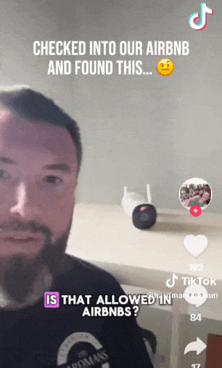 Hardman先生在TikTok视频中表示:“我们昨晚到了Airbnb,地方还不错,但有件事我不太确定,你们能帮我看看吗?Airbnb允许这样做吗?这是常规操作吗?”他当时正站在房内摄像头前。