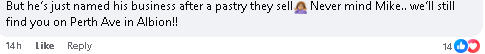 还有人表示不解:他不过是用自家卖的点心来取名而已嘛????????♀️。算了算了,我们还是知道去 Albion 的 Perth 大街找你!