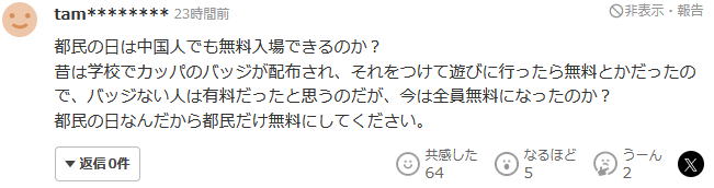 对于这种变化,日本网友心情复杂。有人认为一些景点不应该对外国游客免费: