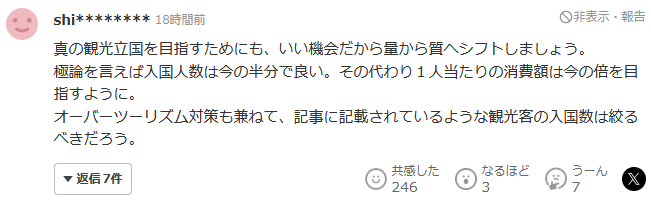 为了真正实现观光立国,这是个好机会,从数量调整到质量上吧。