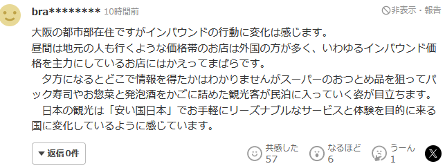 有人认为游客行为确实改变了,现在去日本旅游的人多是因为“便宜”: