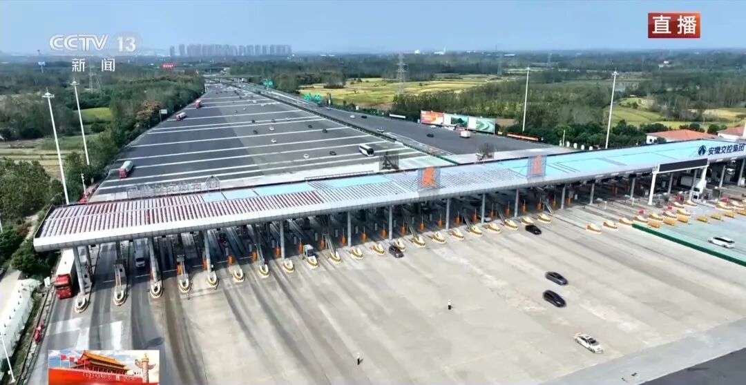 总台记者 吴俊:这张照片是在吴庄收费站拍摄的,往江苏方向的车辆几乎把24个车道填满了。