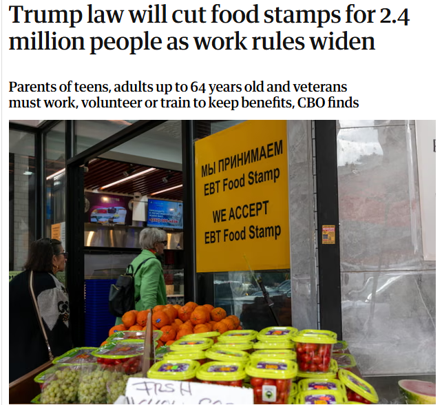 这项原定2026年实施的新规,被川普政府提前到11月2日生效。根据国会预算办公室(CBO)的最新估算,全美将有约240万人将失去粮食券资格。