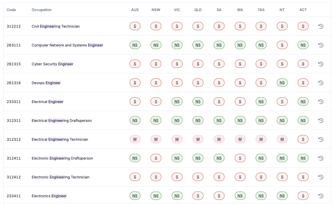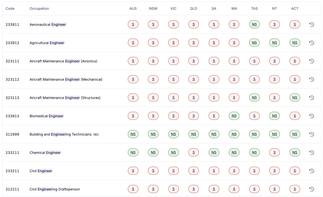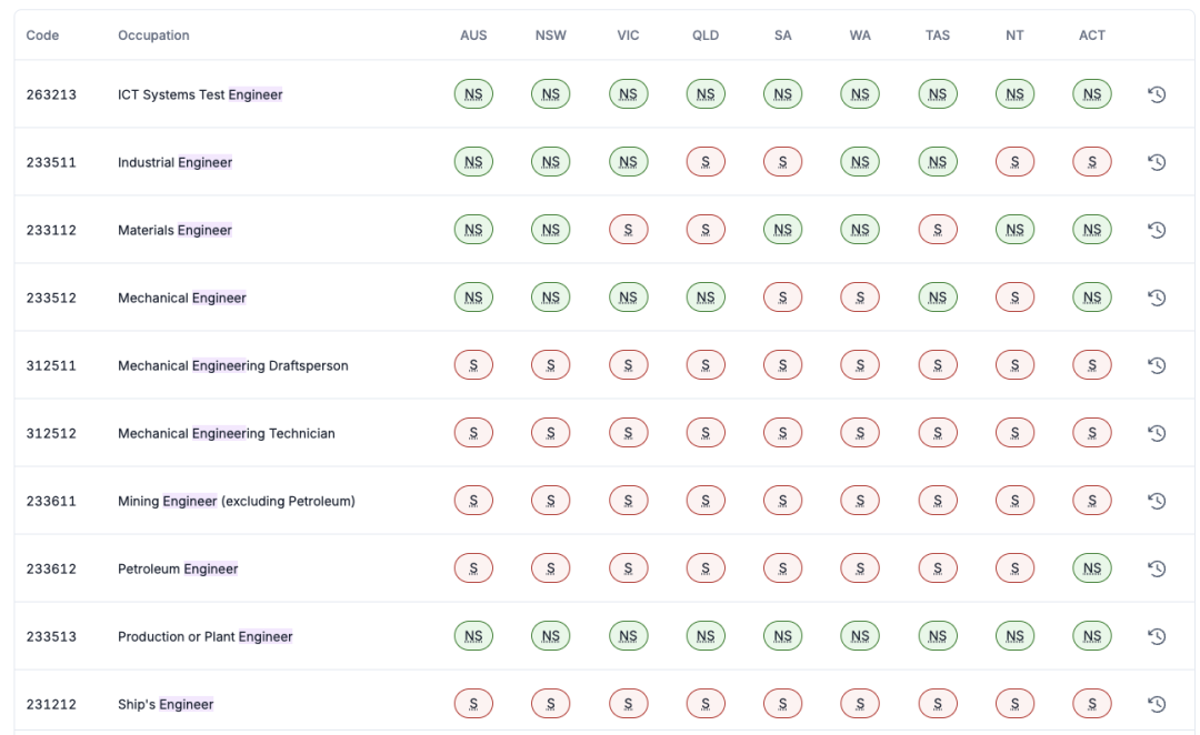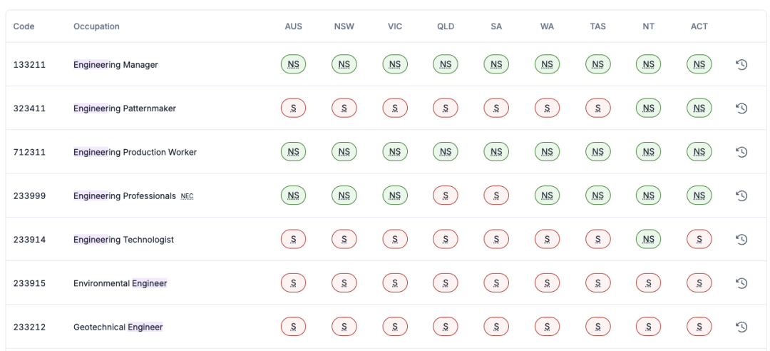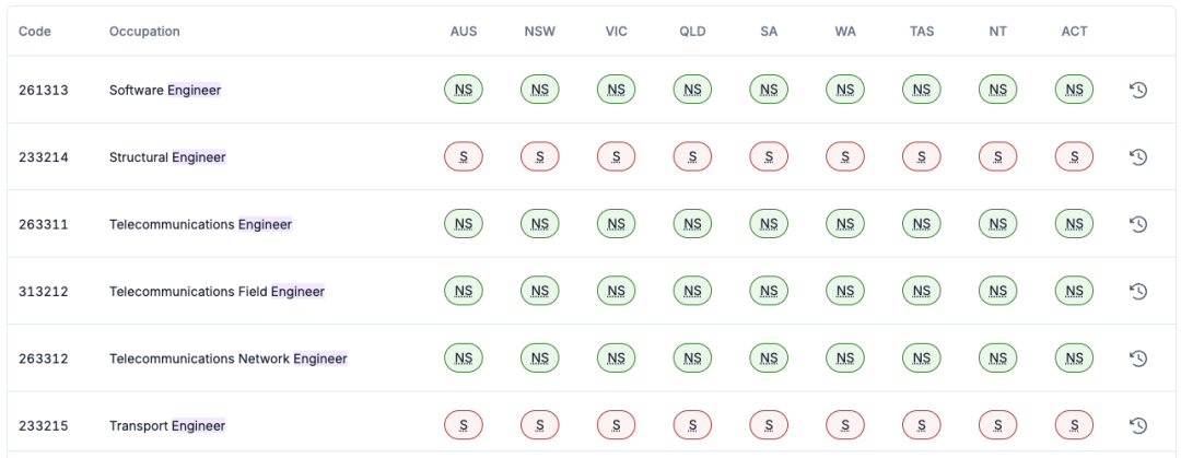 工程师分类很多!情况大不相同!很多情况是有些州会缺某个职业类别的工程师!大家可以自己对下号哦!像土木工程师就全澳各州都缺!电力工程各州有的缺有的不缺。