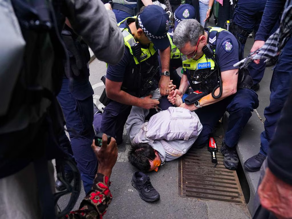 维州警方对暴力事件表示谴责。警方表示,2名警察遭到袭击,其中一名女性警员手部骨折,另一人腿部被割伤,警察的防暴盾牌也被投掷物击碎。