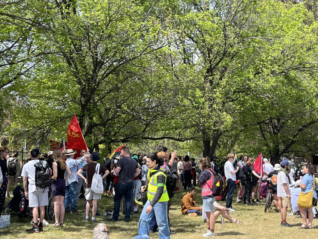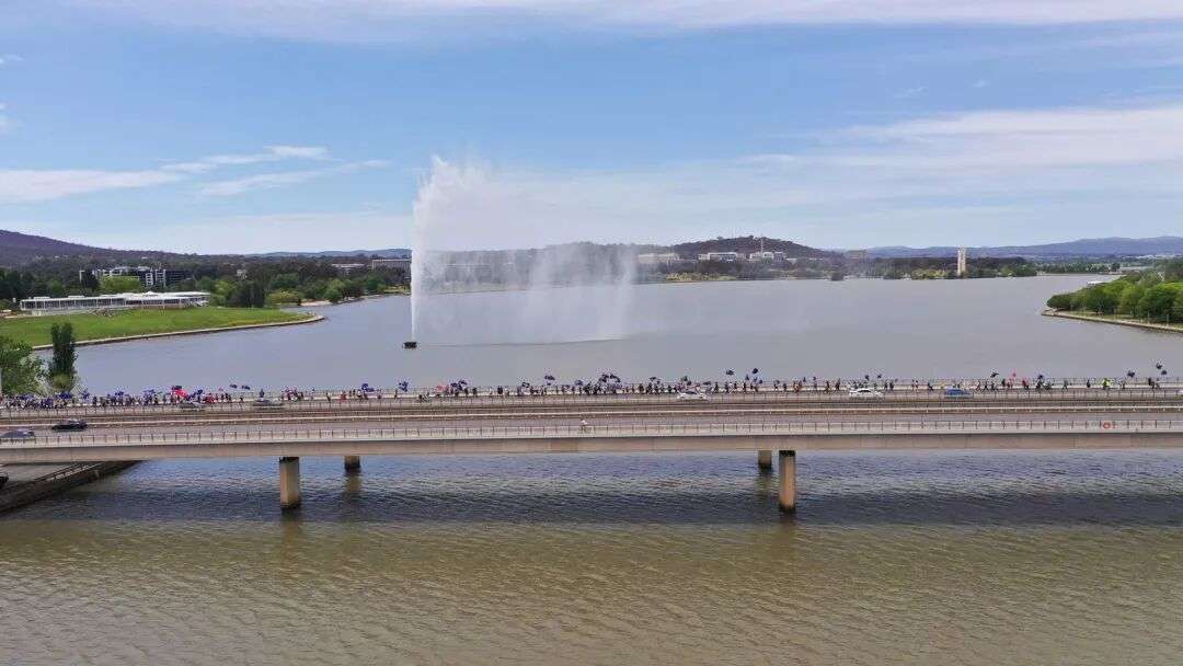 超400人参加了堪培拉“为澳洲游行”集会,队伍从Captain James Cook纪念碑出发,穿过Commonwealth Bridge,向国会大厦方向游行。
