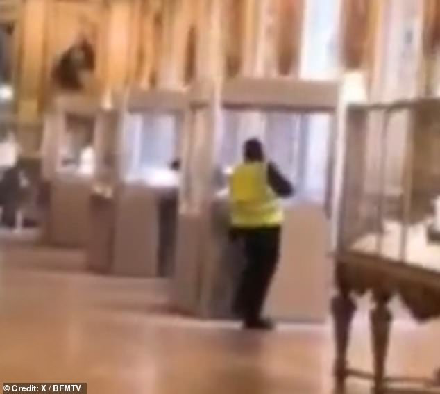 他们动作娴熟,随着玻璃破碎声响起,他们直奔目标:两座展示法国皇室珠宝的玻璃柜。