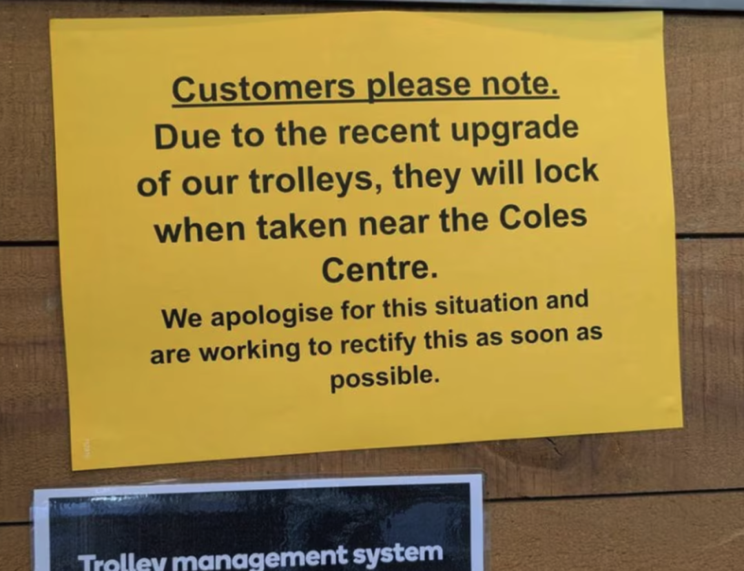 Coles回应称,自2023年以来公司在部分门店引入推车防盗锁定系统,旨在减少购物车遗弃问题,而不是针对竞争对手。Woolworths也表示,其购物车因受到Coles系统的信号干扰才出现“误锁”,目前两家公司正在协调解决问题,避免给顾客带来不便。