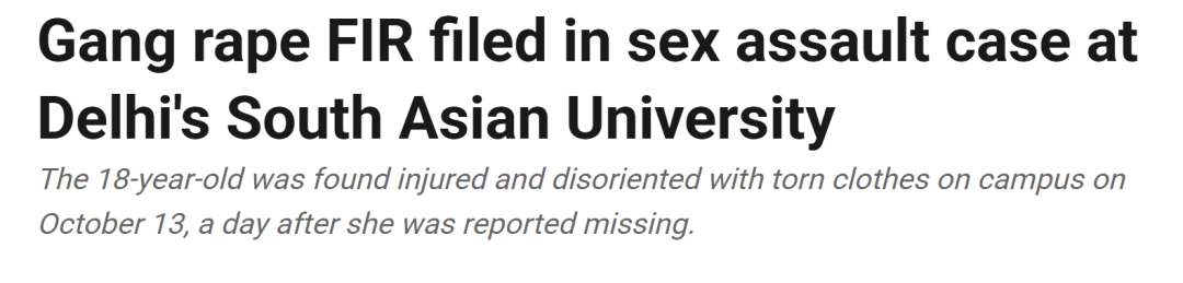 事情发生在10月13日下午,印度首都新德里南区,查塔普尔地区的南亚大学(South Asian University),一个医学院的女生突然失踪了,同学说她好几个小时都联系不上人了,于是报了警。