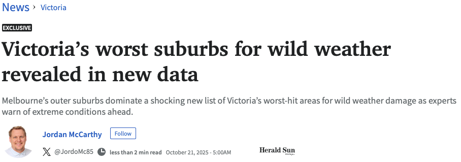 保险公司AAMI近日公布了该州在过去三年中受极端天气影响最严重的地区。