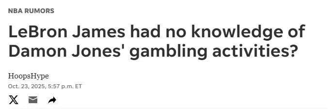 据说这事还跟詹姆斯扯上了关系,在2023年2月那场比赛中,达蒙·琼斯给一位同谋发短信,要求“今晚在雄鹿队身上下重注”,因为詹姆斯将缺席比赛,最后雄鹿队果然赢了。
