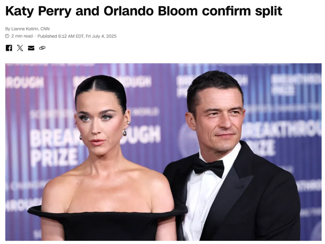 今年夏天,凯蒂与英国演员奥兰多·布鲁姆(Orlando Bloom)正式分手。