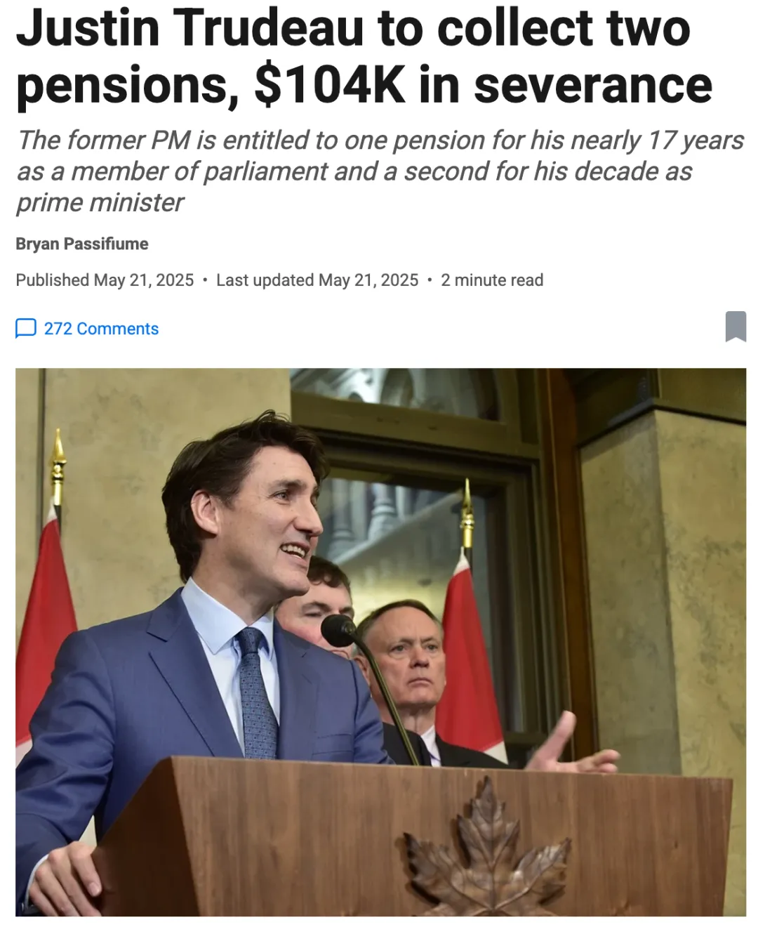 2025年3月,特鲁多辞去加拿大总理及自由党领袖职务,正式告别政坛,手握840万加元养老金,开始“单身生活”。
