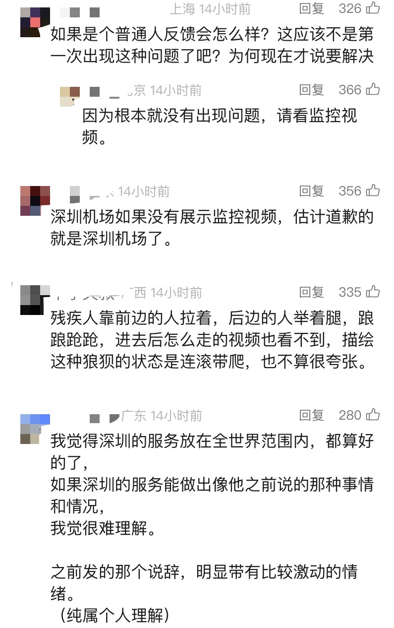 当天,深圳机场两度通过官方微博回应道歉,称机场已“高度重视”,并将联合航空公司立即整改,完善轮椅旅客服务保障流程。