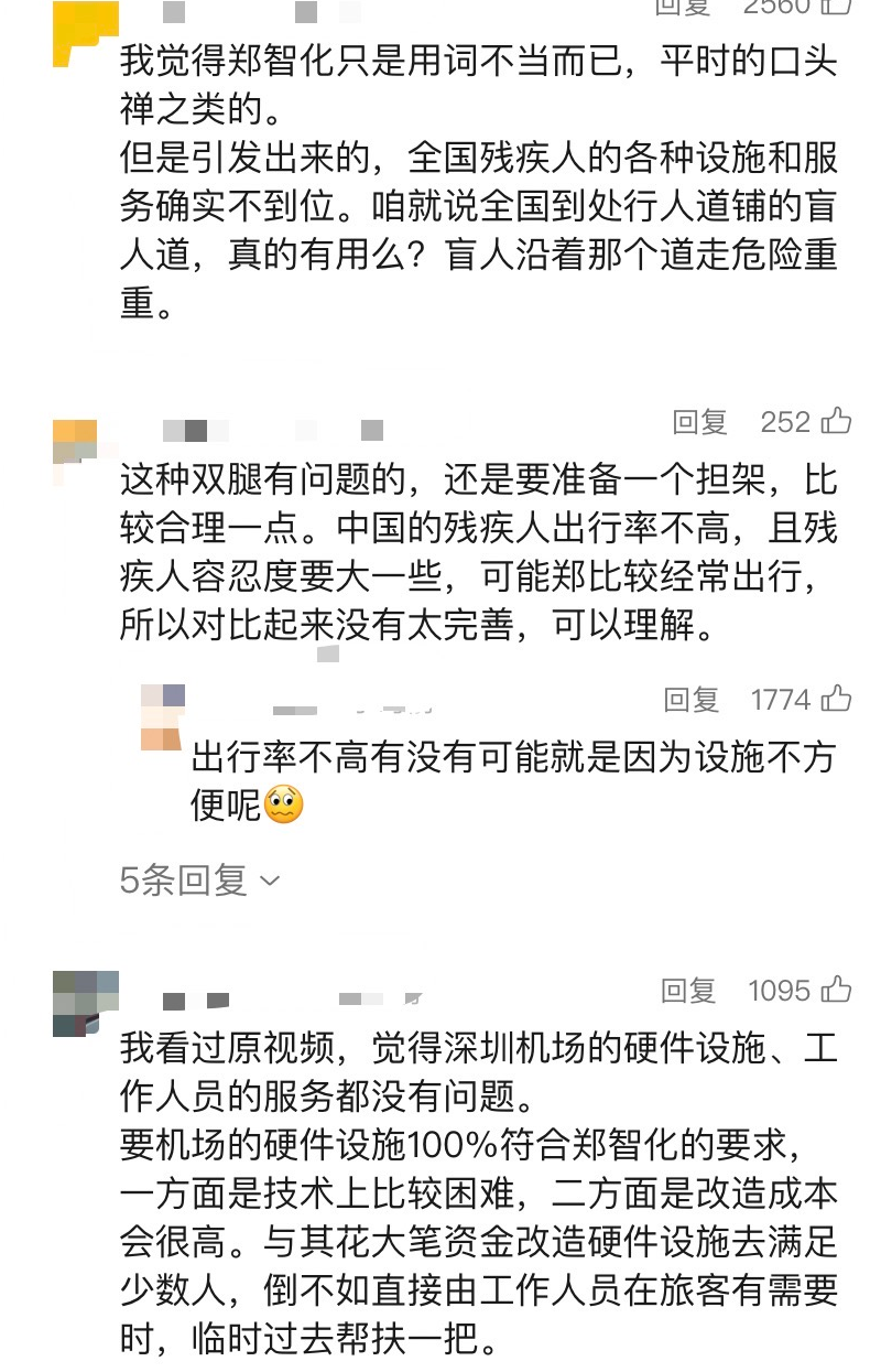 随着视频传播,舆论出现反转,大量网友在郑智化微博评论区留言,质疑其“夸大事实”,认为机场工作人员确实提供了协助。