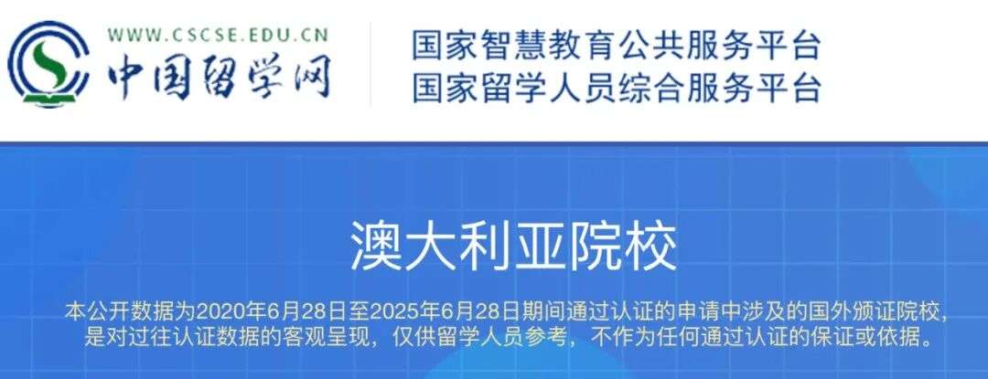 关于最新一期中,中留服认证的澳洲院校,大家可以通过以下网址进行查询⬇️