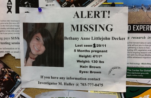 2011年2月19日,一对年迈的夫妇向弗吉尼亚州最大的警长办公室劳登县警局报案称,他们21岁的孙女贝瑟尼失踪了。他们还告诉警方,贝瑟尼已经怀孕五个月了。