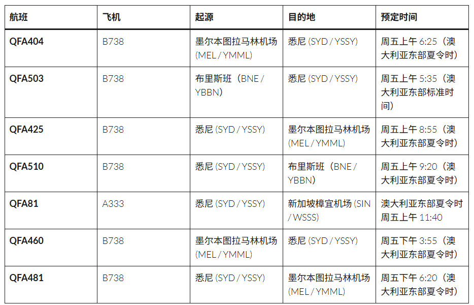 根据航空公司公告,此次航班调整范围涵盖悉尼Kingsford Smith机场、墨尔本Tullamarine机场及布里斯班机场三大枢纽。
