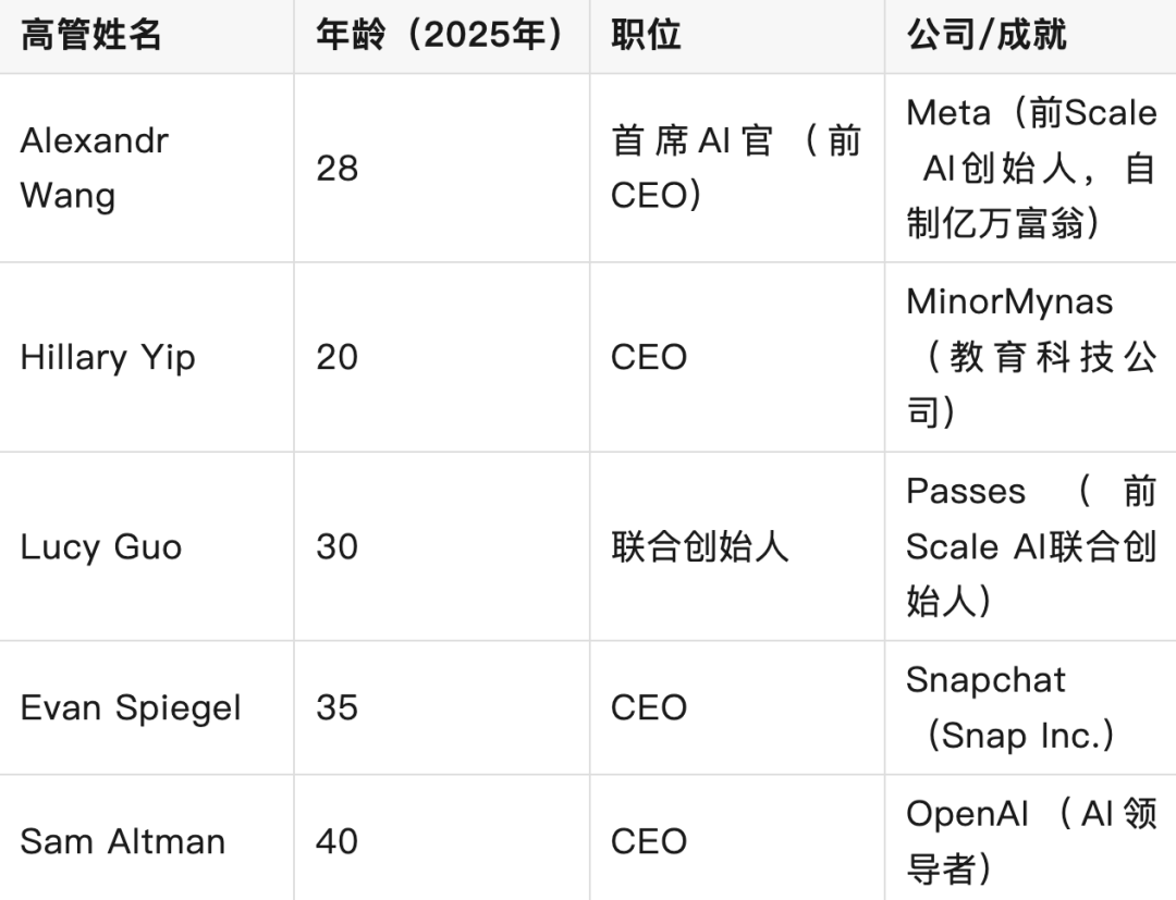 根据数据,科技行业的高管确实呈现出年轻化的趋势,尤其是AI、初创企业和新兴科技领域。