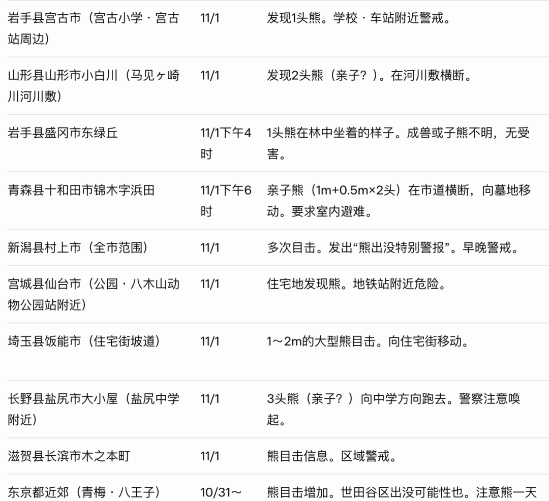 秋田县一位消防员疲惫地说:“我们每天接到几十起熊目击报告,都快应付不过来了。”