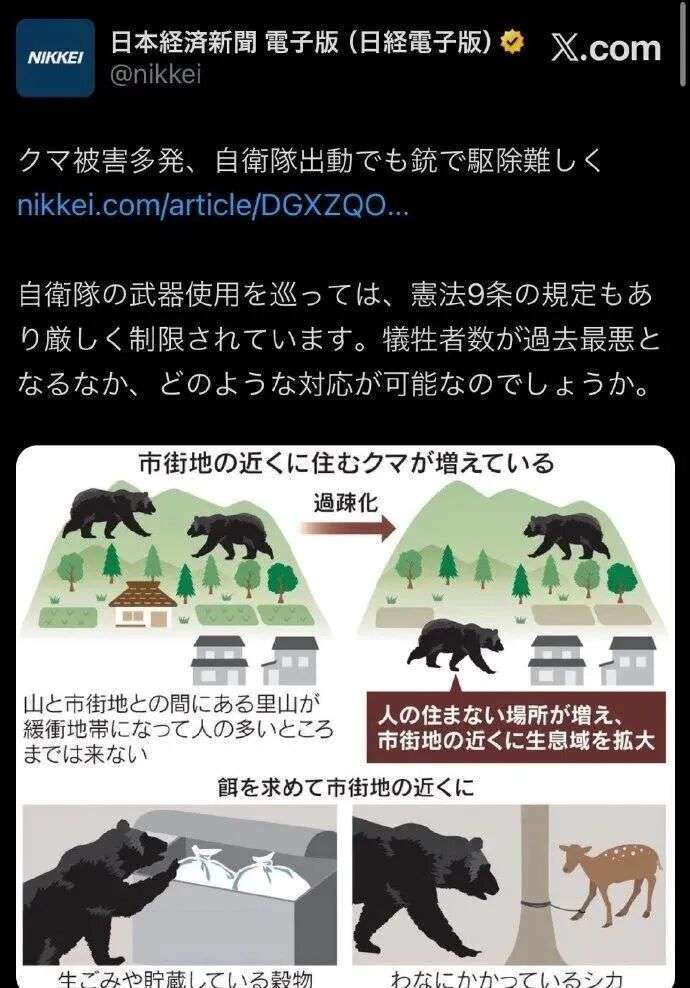 虽然今年6月,环境省引入“紧急枪猎制度”,允许猎人在市长允许下,在市区即时射杀熊,但事后可能被书类送检,也可能被取消枪支许可,所以这个制度的实际执行困难。