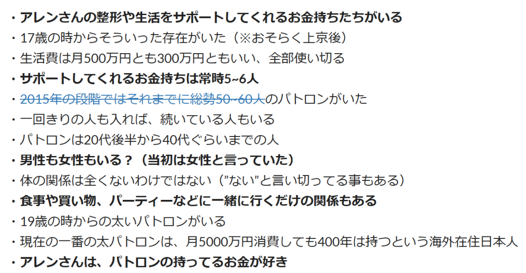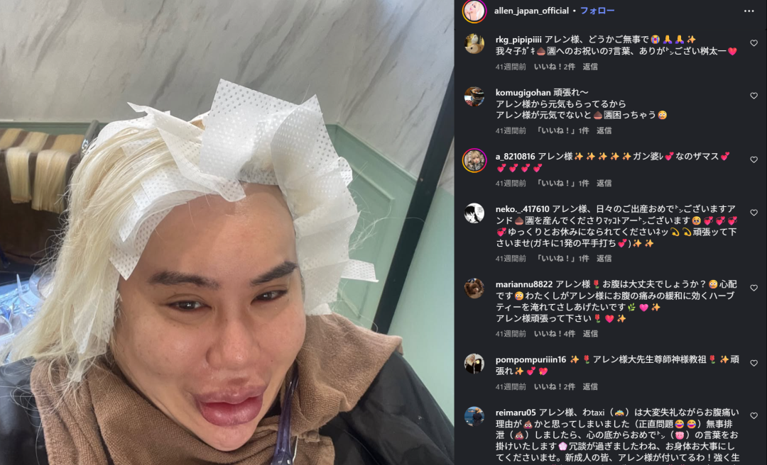 他表示自己花在脸上的整容费用快接近1亿日元,当被问及是哪来的钱时,アレン也毫不避讳地表示,背后有金主支援。