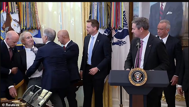 大约40分钟后,记者会重新开始。川普表示,这位代表“只是短暂头晕,目前情况良好”。他还幽默地补充道:“看来今天的政策确实让药企高管压力不小。”这句略带幽默的回应缓解了紧张气氛,但网络上相关片段已在数小时内冲上各大新闻平台热搜。