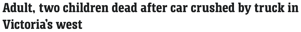 一名成年人和两名儿童在维州西部一辆汽车被卡车碾压后死亡。