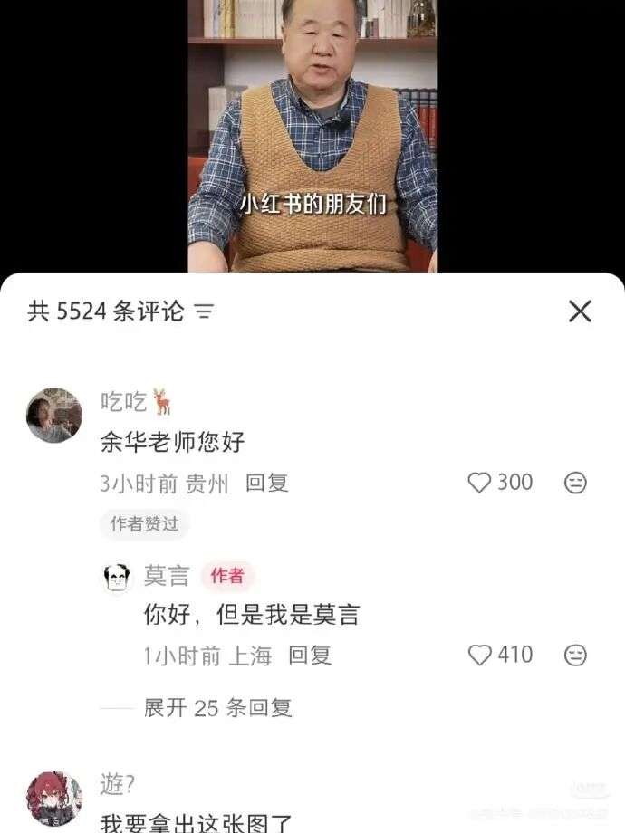 有网友打招呼:余华老师您好!莫言回复:你好,但是我是莫言。
