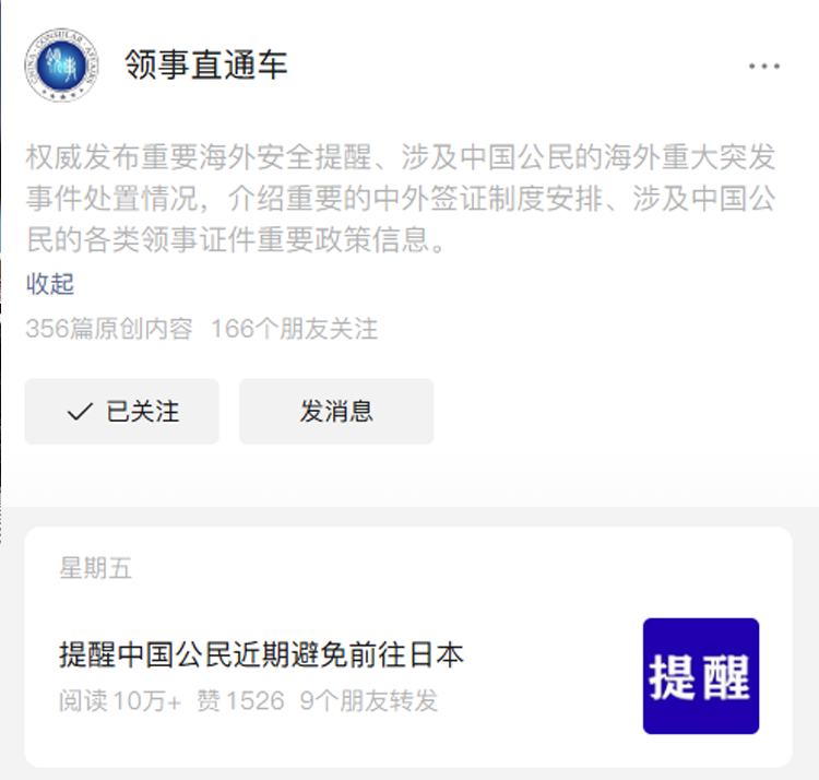 官方也发出了明确提醒:近期避免前往日本;已在日本的中国公民务必提高安全警惕。