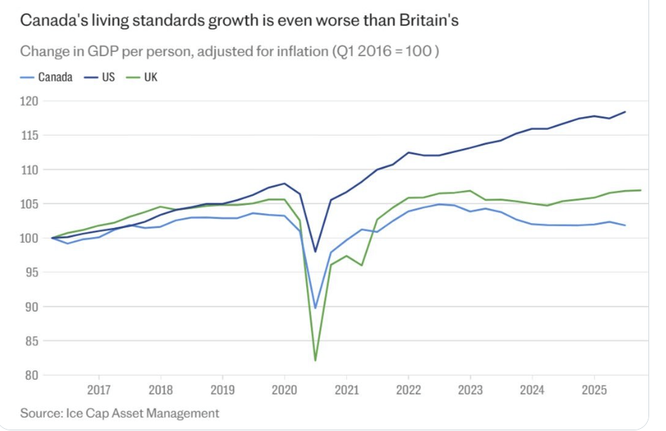 加拿大是G7国家中,国外出生人口占比最高(23%)的国家,却让自己的生活水平一路停滞、甚至倒退!