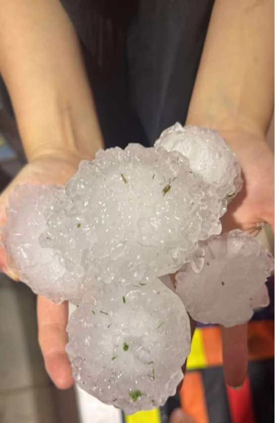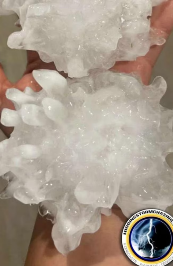 巨型冰雹在社交媒体上引发巨大震动。