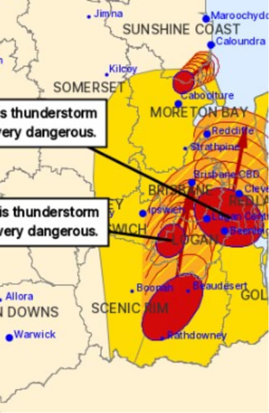 随后的数小时,风暴向北移动,预计将继续影响布里斯班北部与 Caboolture 一带。