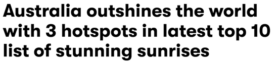 旅游专家Travelbag通过Instagram和TikTok话题标签数据,揭晓了世界最美日出地点排名,澳洲三城上榜!