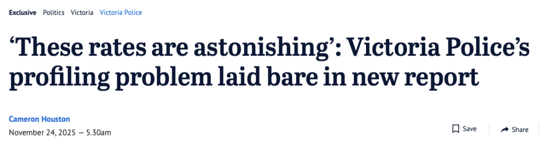 该报告基于通过信息自由法案(FOI)从维州警方获得的数据,