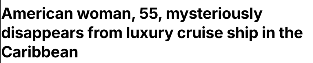 最近游轮出事出得有点频繁了,美国少女离奇陈尸房间牵扯出一桩家庭谋杀案,真相都还没查清呢,又有人“蒸发”了?!