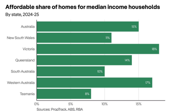 年收入约11.8万澳元的中等收入家庭,在2025财年仅能负担15%的在售房产。