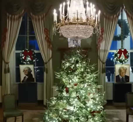 收藏白宫公布“圣诞节限定皮肤”:特朗普将自己画像与华盛顿并列,“遭枪击瞬间”大幅画像放在显眼位置