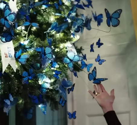 报道称,上述华丽装饰还包括超过1万只蓝色蝴蝶、2.5万英尺长的彩带、2000串彩灯、2800颗金星、700英尺长的花环、120磅姜饼、51棵圣诞树等。